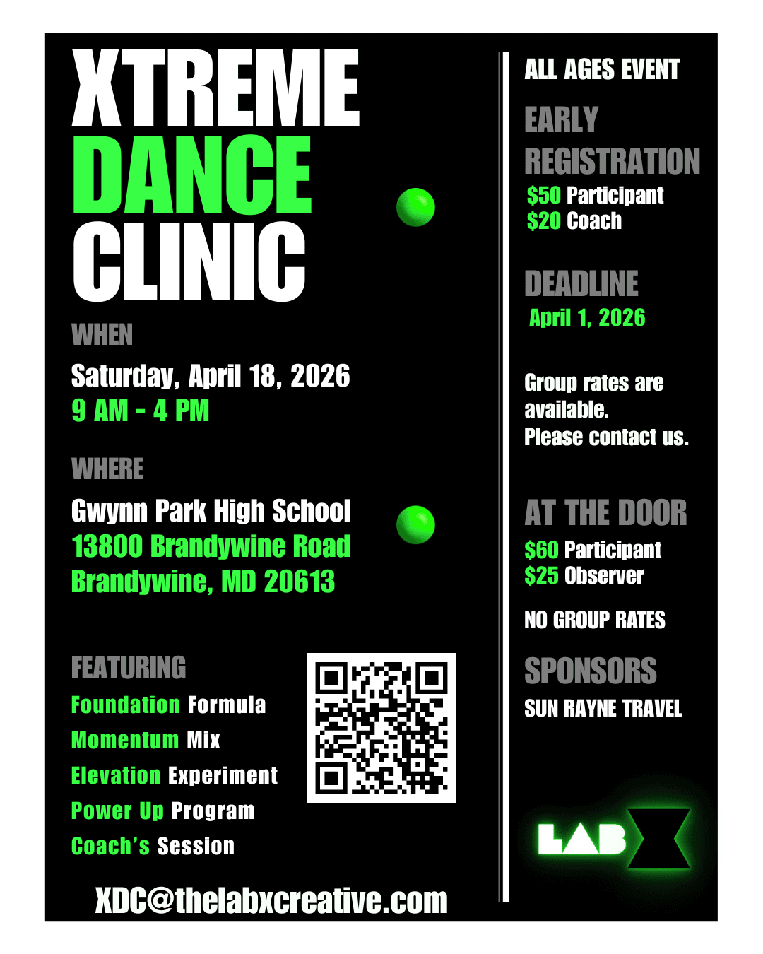 Register before April 1, 2026 to receive exclusive early registration pricing for the Xtreme Dance Clinic.